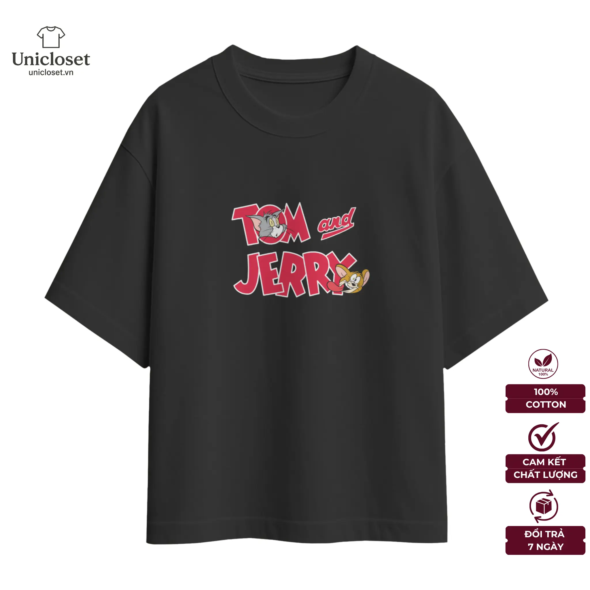 Đây không chỉ là chiếc áo, mà còn là lời nhắc về những tiếng cười sảng khoái của những lần rượt đuổi huyền thoại. Graphic in sắc nét với Tom màu xám cool tone, Jerry màu nâu ấm, kết hợp form oversize rộng rãi, giúp bạn dễ dàng phối cùng jeans, quần cargo hoặc layer cùng hoodie để tạo ra outfit streetwear cực chất.