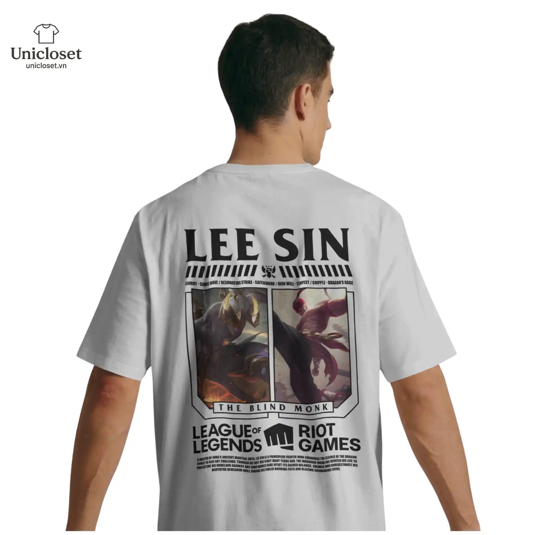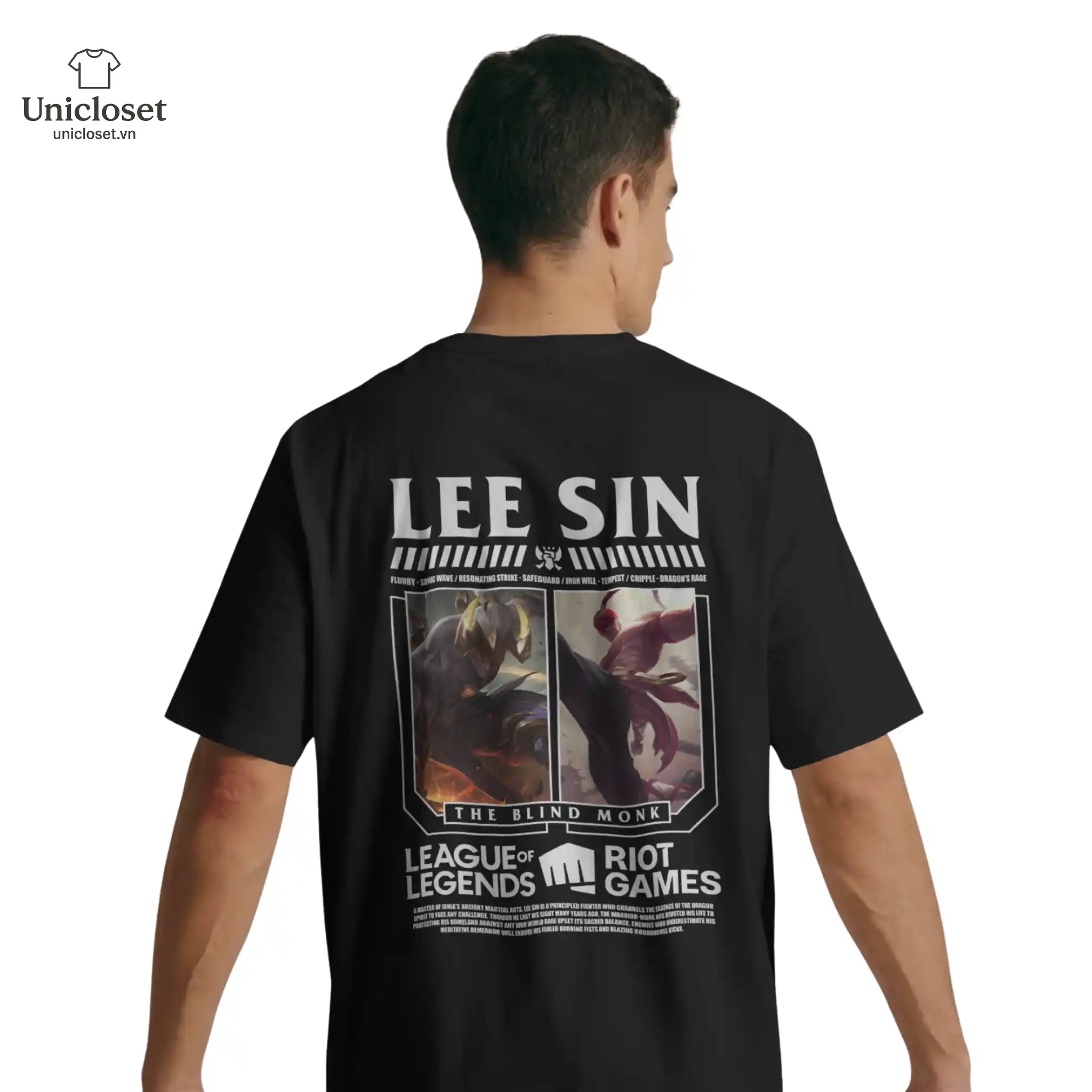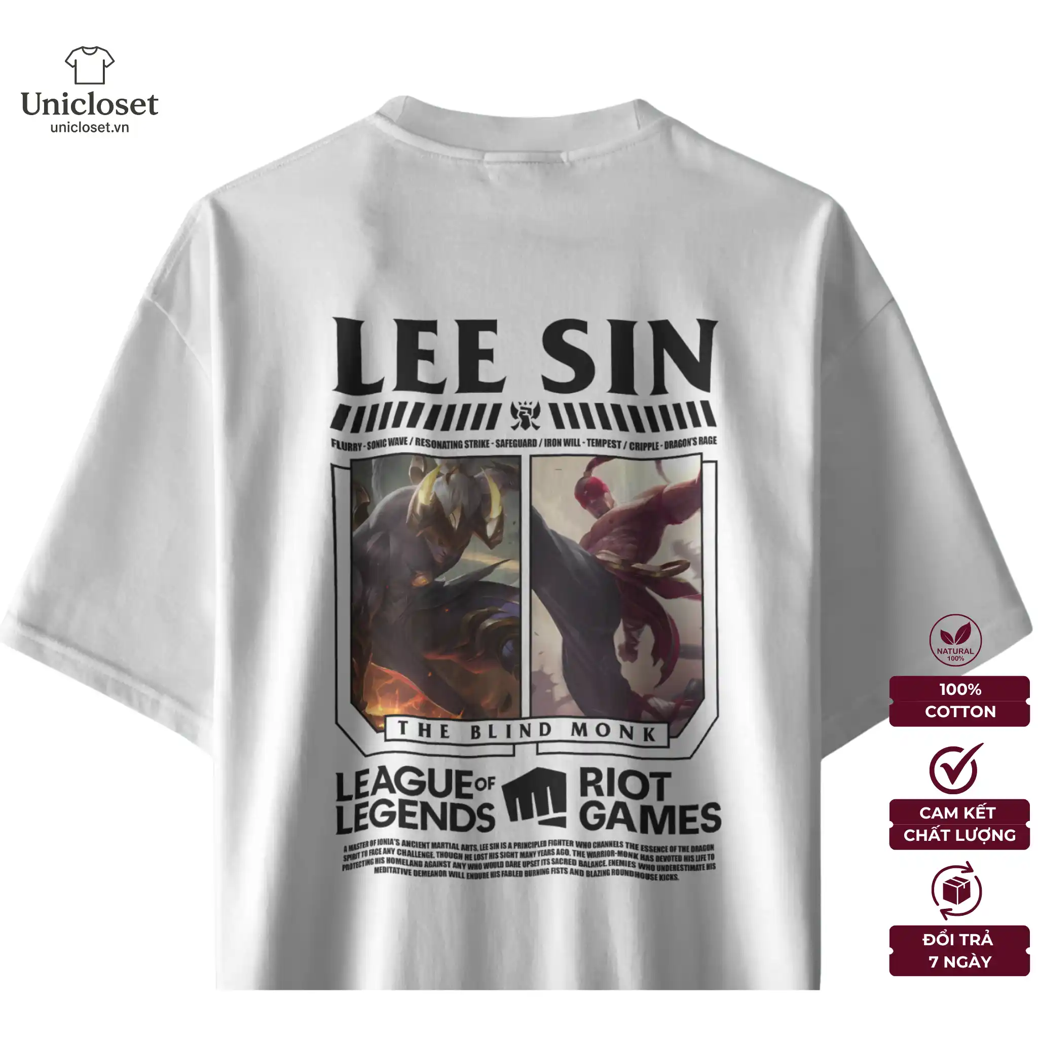 Mang sức mạnh và sự tập trung đỉnh cao của Thầy Tu Mù đến outfit thường ngày của bạn với chiếc áo thun Lee Sin Liên Minh Huyền Thoại. Thiết kế lấy cảm hứng từ những pha Sóng Âm, Vô Ảnh Cước thần thánh, gắn liền với hình ảnh Lee Sin trần lực lưỡng, mắt bịt băng đỏ, hai tay nắm đấm bọc lửa.