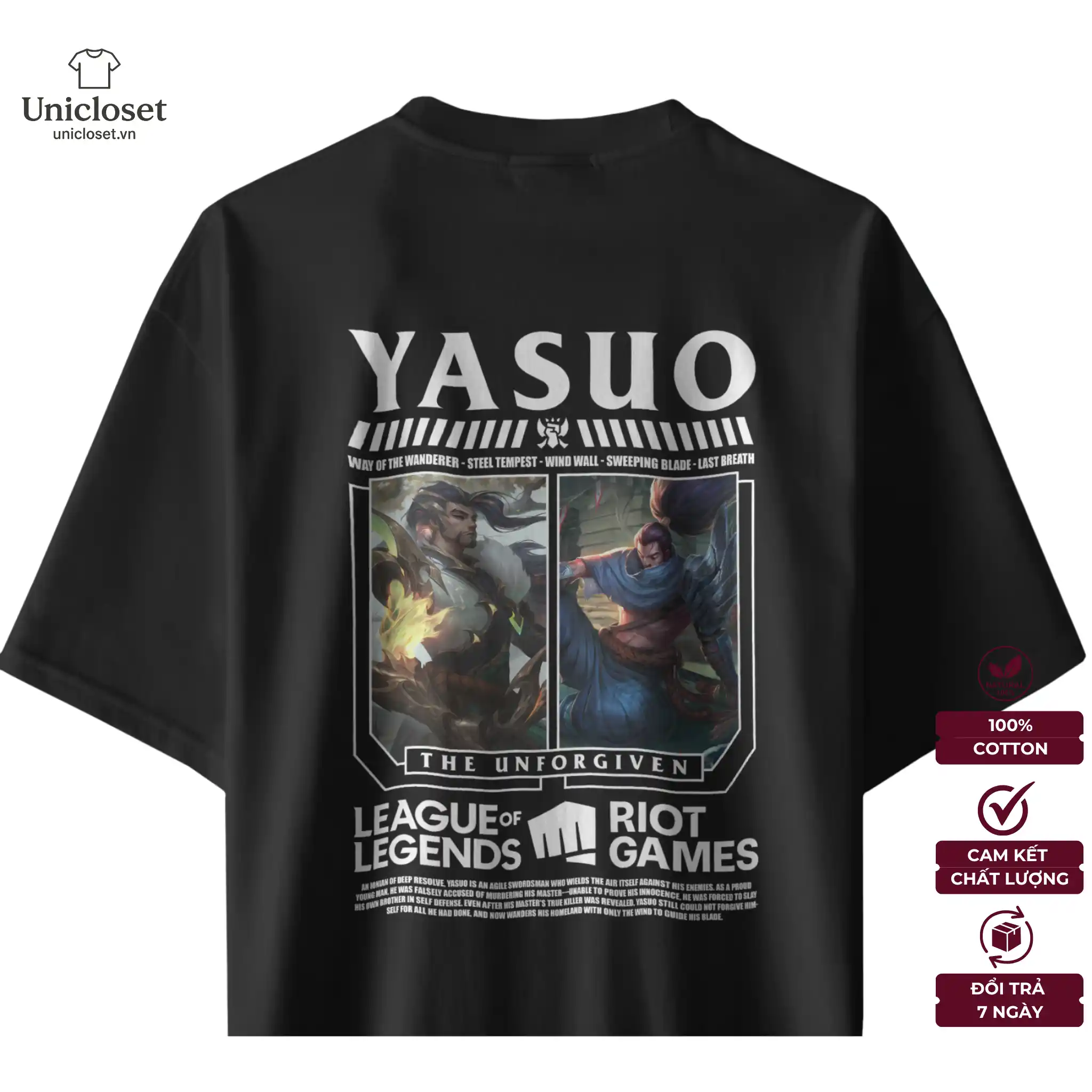 Áo thun Yasuo Liên Minh Huyền Thoại, chiếc áo dành cho người chơi yêu thích vị tướng lướt gió này. Hình in chất lượng cao, giữ màu tốt, là món quà lý tưởng cho các game thủ LMHT.
